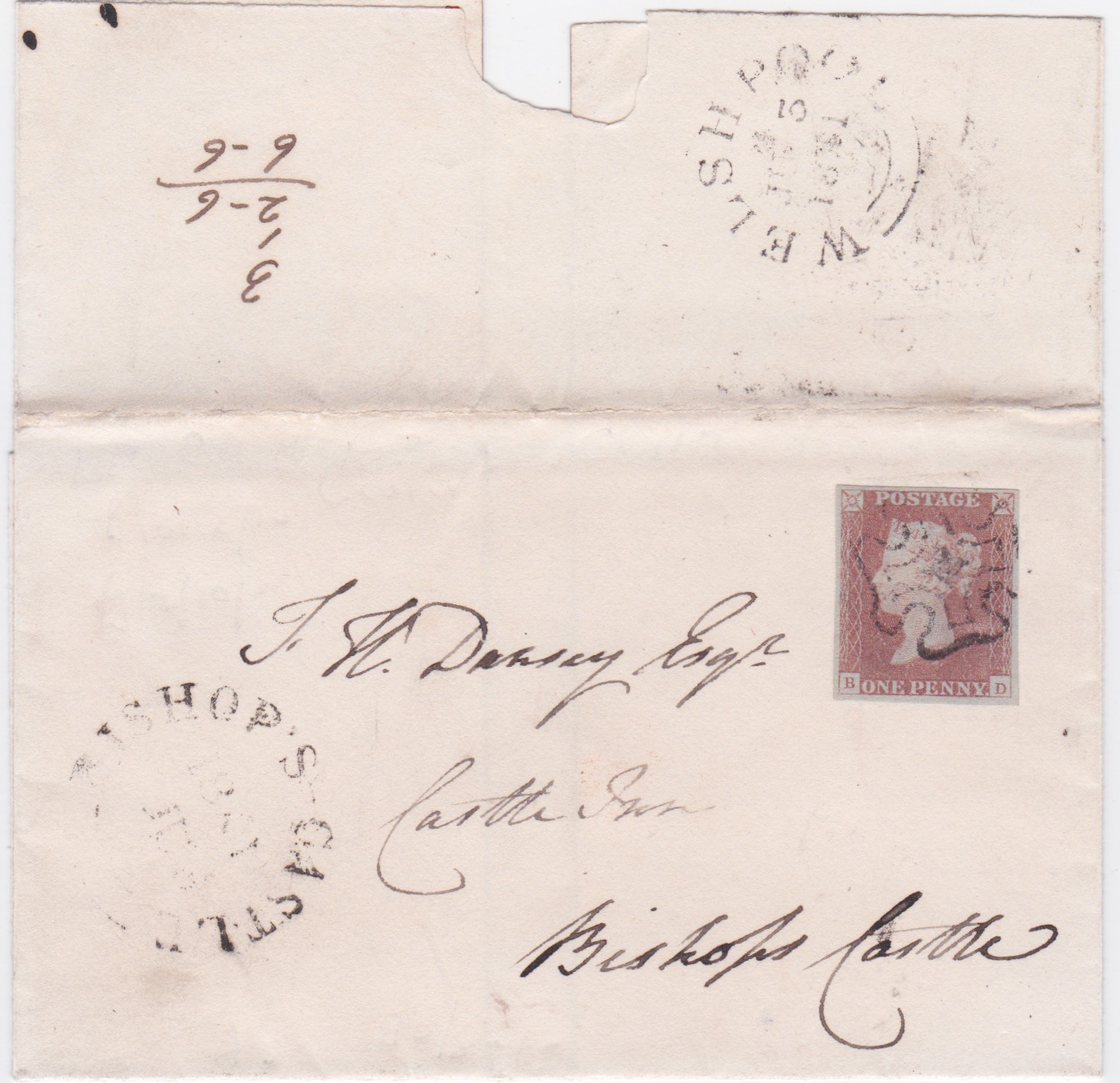 1d Black (plate 2 reentry) with Manchester Fishtail MX. One of 3 covers on the earliest known date.