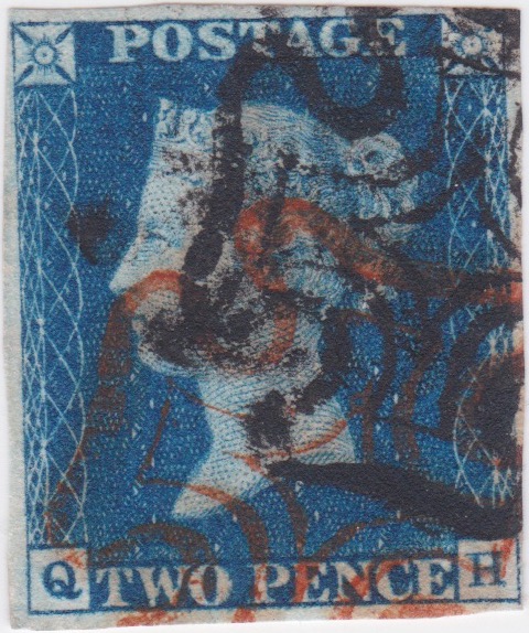 1d Intense Black (plate 7). Fraudulant re-use. Still affixed to the original stamp shaped portion of letter from where it was cut but with a small section removed, presumably because it showed part of the cancellation. Re-affixed with sealing wax to a wrapper sent to Truro cancelled by two strikes of the red mx with a blue c.d.s at left for DE 10 1940. Endorsed in manuscript "Stamp used before" and changed 2d postage due. Ironically addressed to a Solicitor!